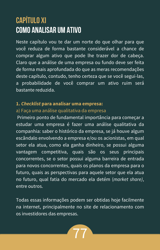 Parabéns pela objetividade e clareza no livro. Eu sou completamente leigo no assunto de finanças, mas ao ler o livro consegui abrir minha mente e ver que tenho muita coisa para mudar na minha vida financeira, e graças ao livro percebi essa necessidade.